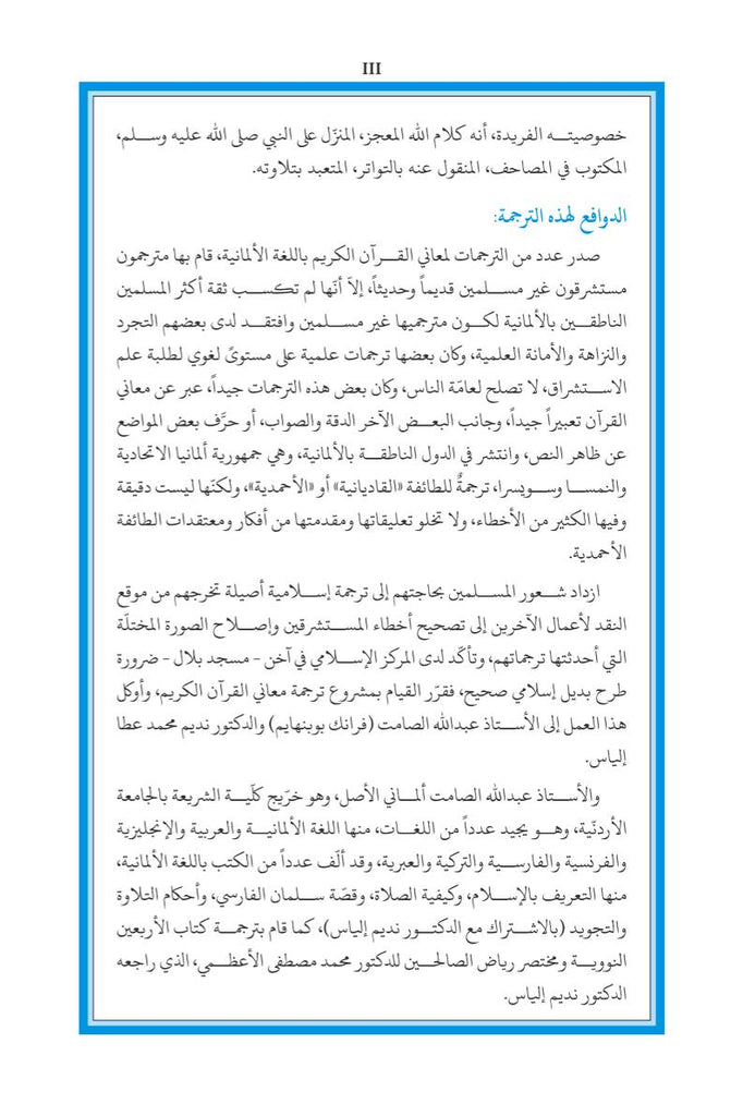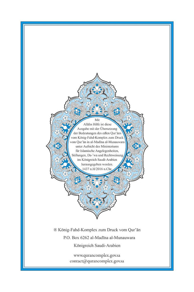 The German translation of the Quran aims to provide German-speaking readers with accurate and accessible understanding of the Holy Quran's divine message. This translation, known as "Al-Almaniya," strives to faithfully convey the meanings, teachings, and spiritual guidance contained in the original Arabic text. It serves as a valuable resource for Muslims and non-Muslims alike who seek to explore the Quran's profound message in the German language, fostering greater knowledge, reflection, and appreciation of Islam's sacred scripture.