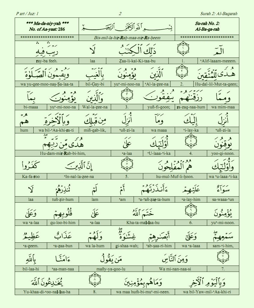 Holy Quran Word to Word Transliteration