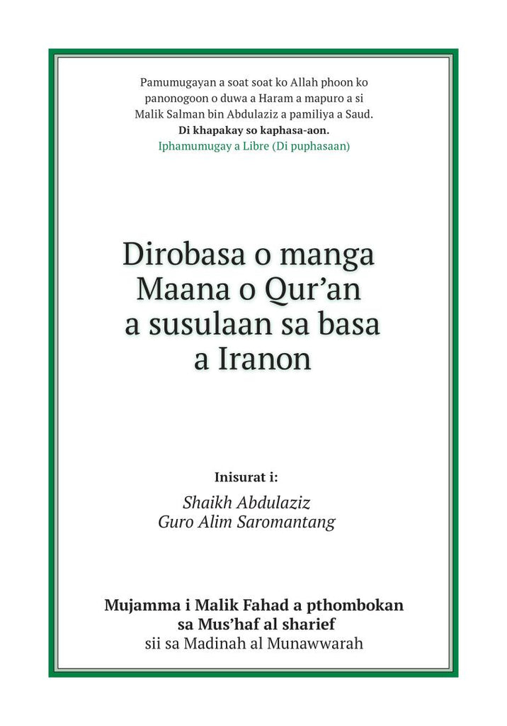 Iranun (Iranon) Holy Quran Translation PDF – Free Download