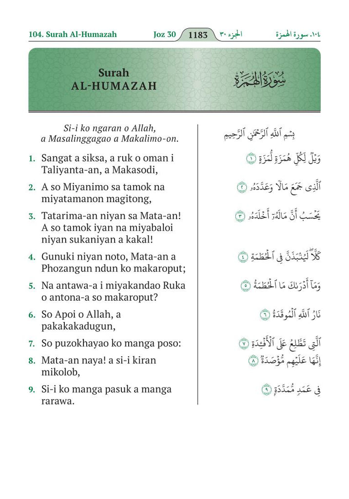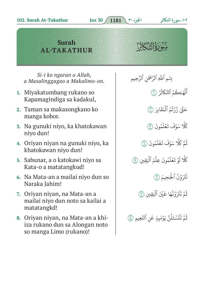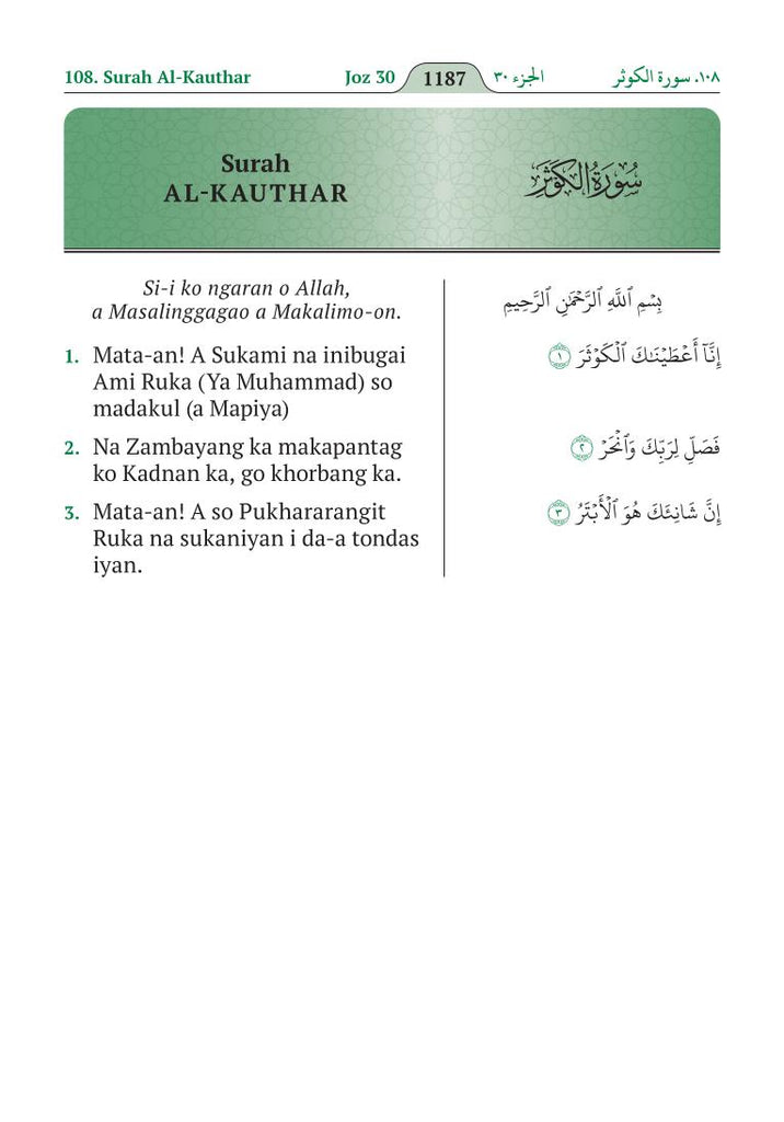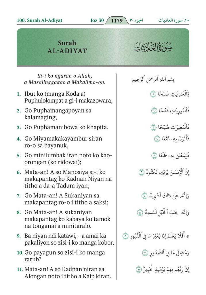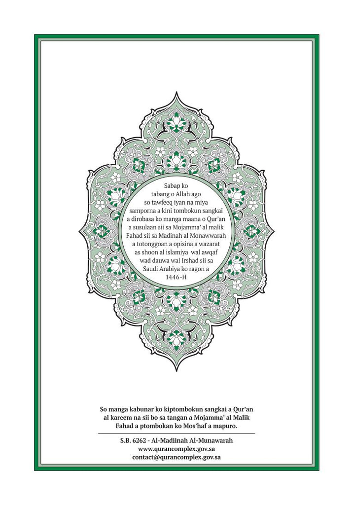 Download the Holy Quran translated into Iranon (Iranun language) for free. This PDF makes the divine message of the Quran accessible to the Iranun-speaking Muslim community in the Philippines and Malaysia.
