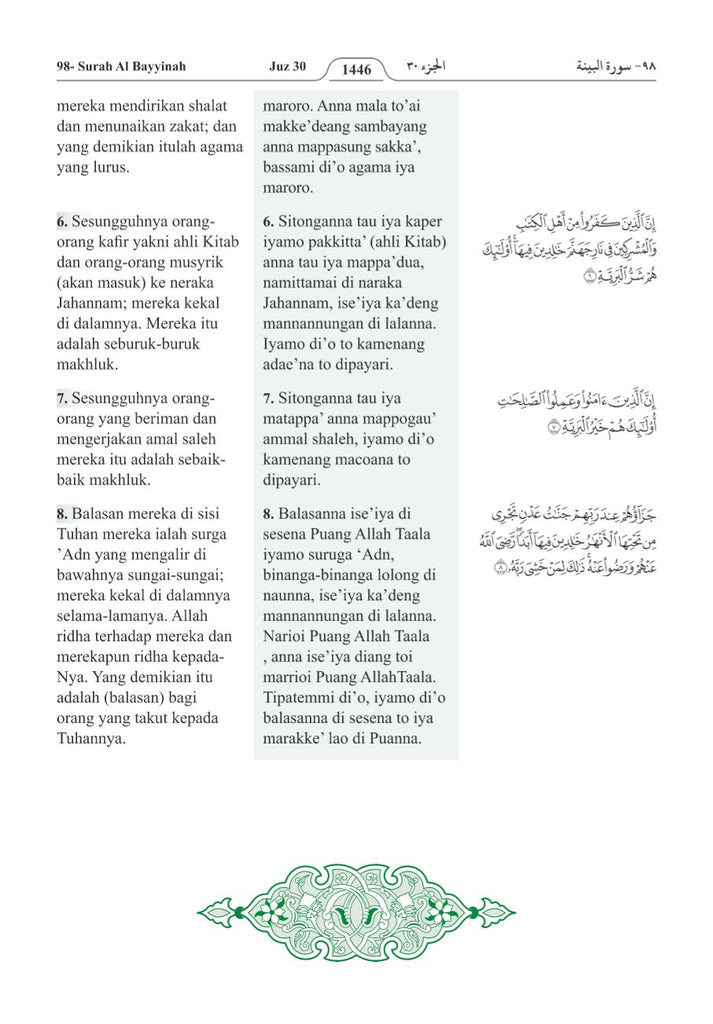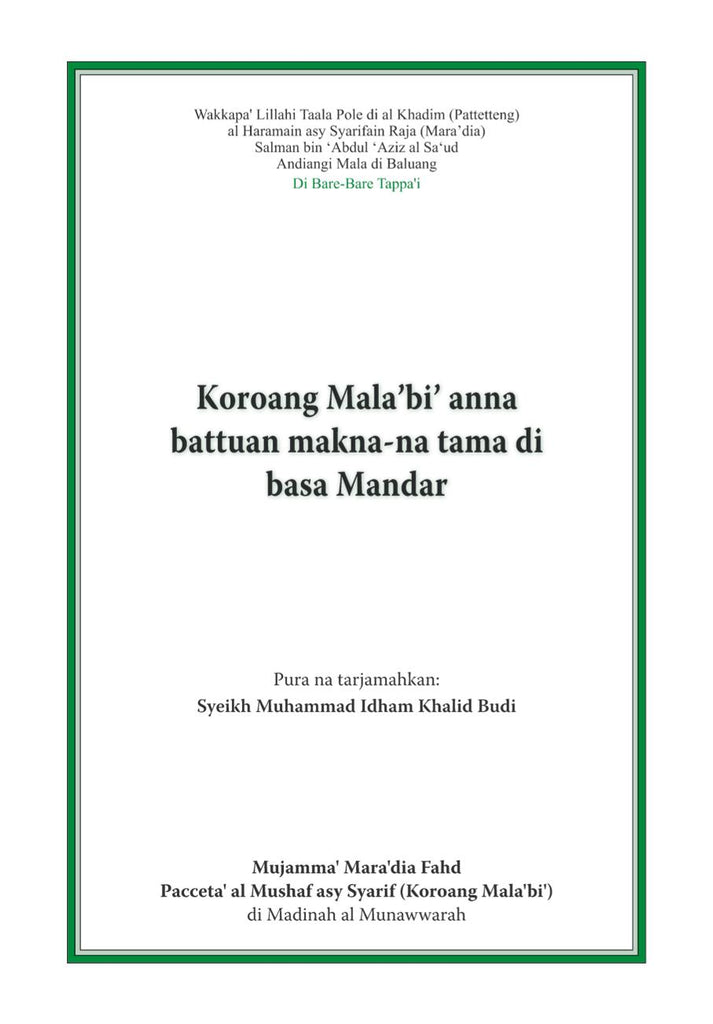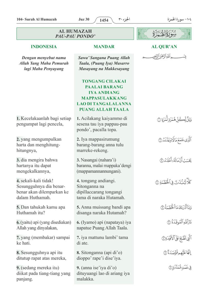 Discover the Mandar language translation of the Holy Quran, including the original Arabic text for authenticity. This faithful translation makes Allah’s divine message accessible and easy to understand for Mandar-speaking Muslims. Whether for study, reflection, or spiritual growth, deepen your connection with the Quran in your native language today.