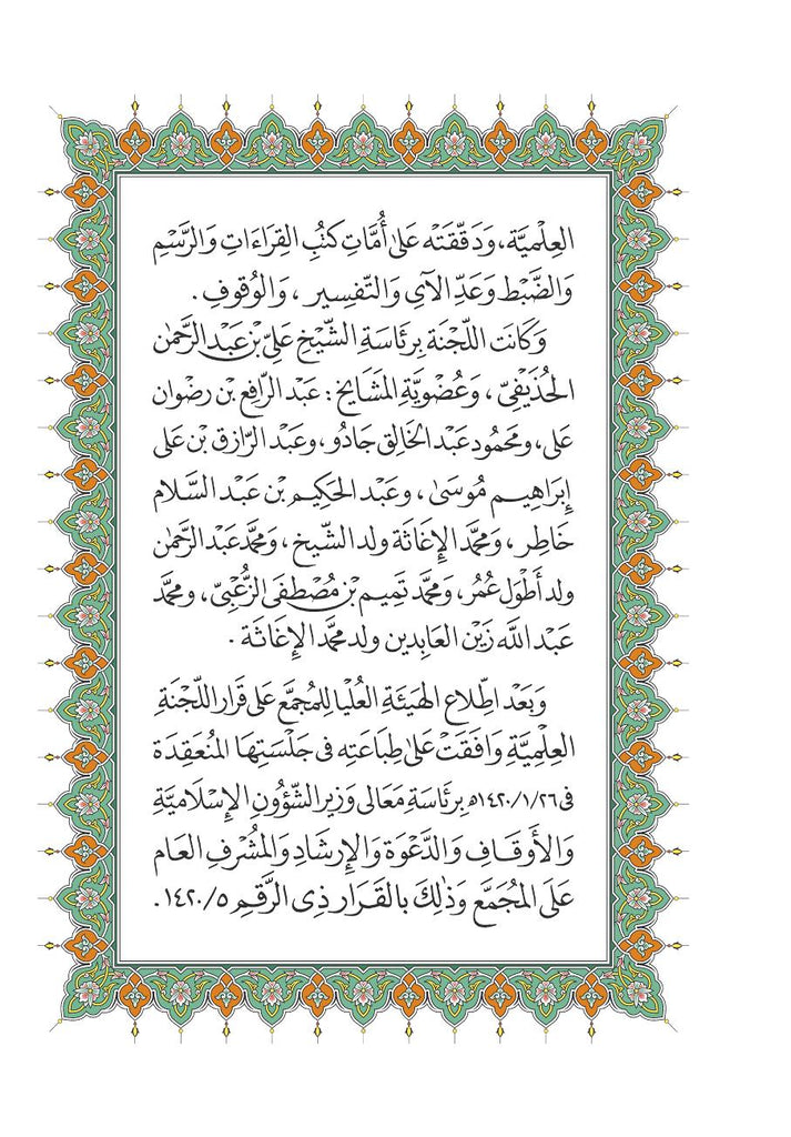 Mushaf Mumtaz (مصحف ممتاز) is a distinguished edition of the Quran printed by the King Fahd Complex for the Printing of the Holy Quran. The term "ممتاز" (Mumtaz) translates to "excellent" or "distinguished," indicating that this edition is of high quality and specially designed to meet the standards of clarity, accuracy, and aesthetic presentation.