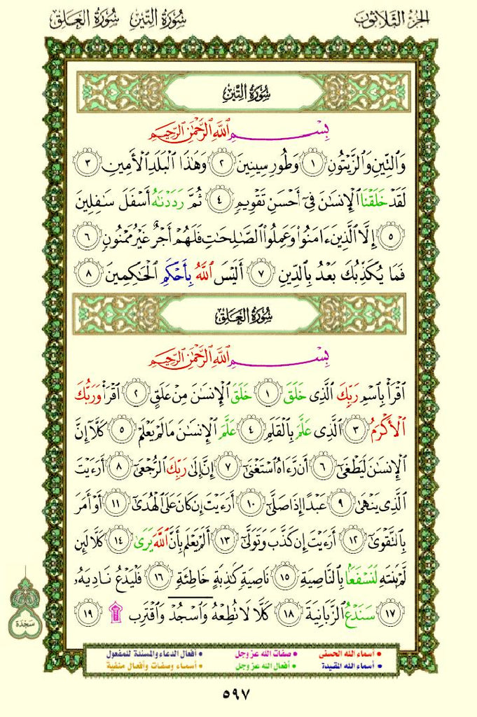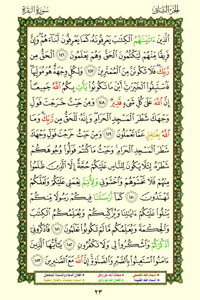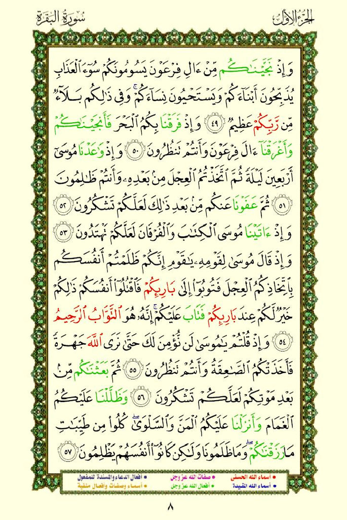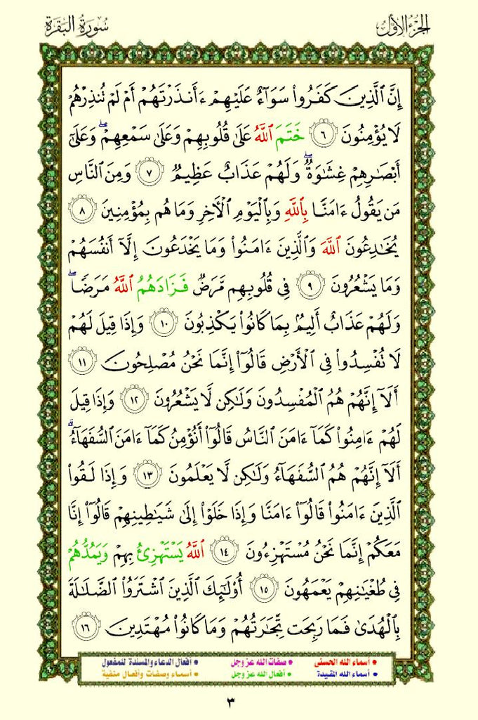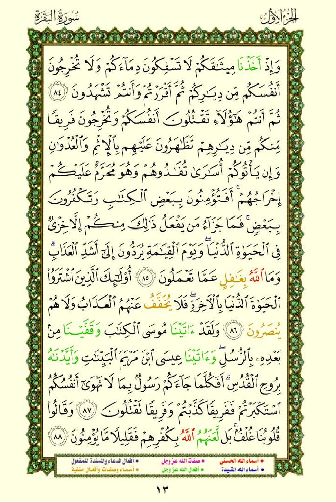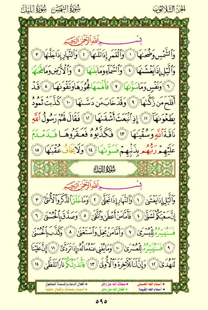 The Quran with Asma Sifat in Color (مصحف الأسماء والصفات) This is a special edition of the Quran that highlights the names (Asma) and attributes (Sifat) of Allah using different colors. This design helps readers easily identify and reflect on the divine names and attributes mentioned throughout the Quran.