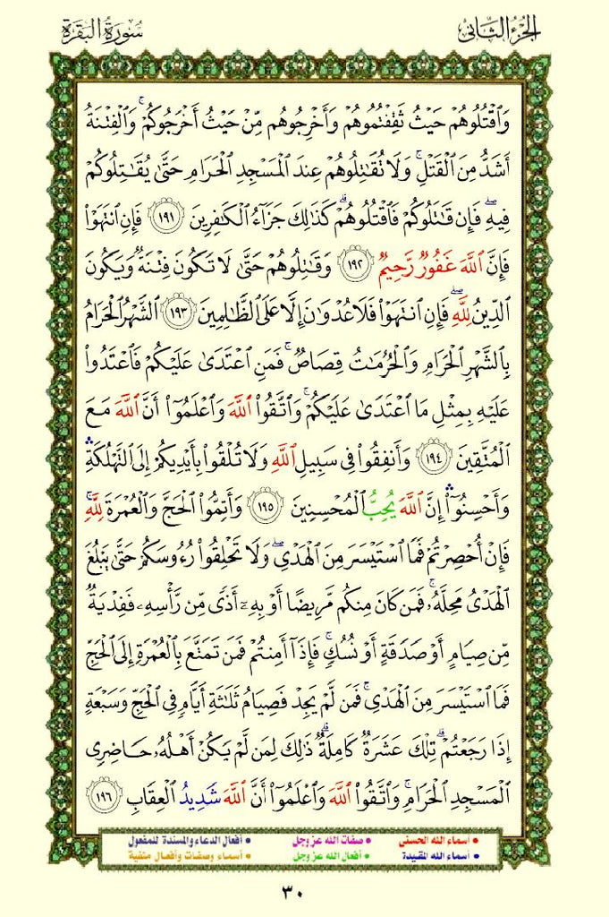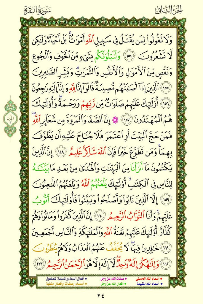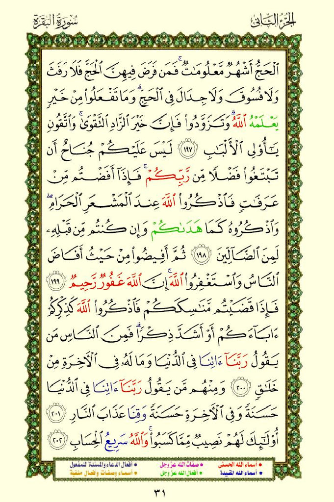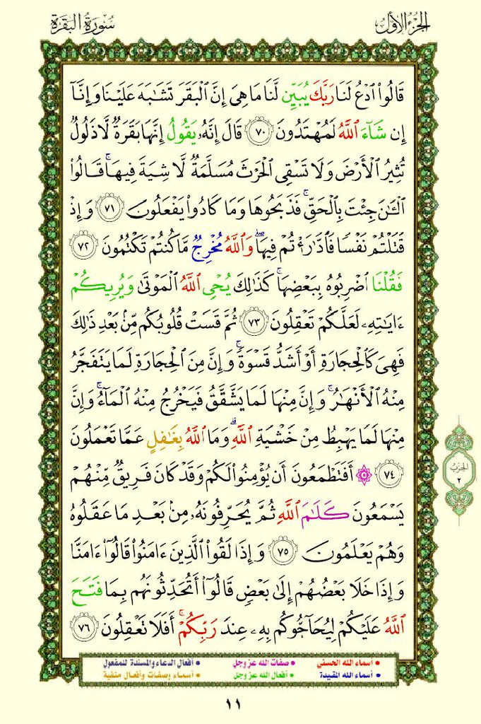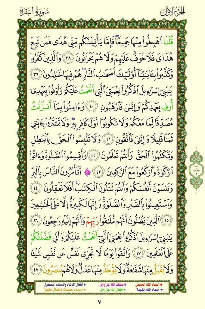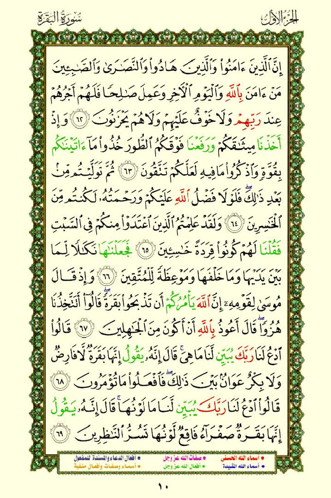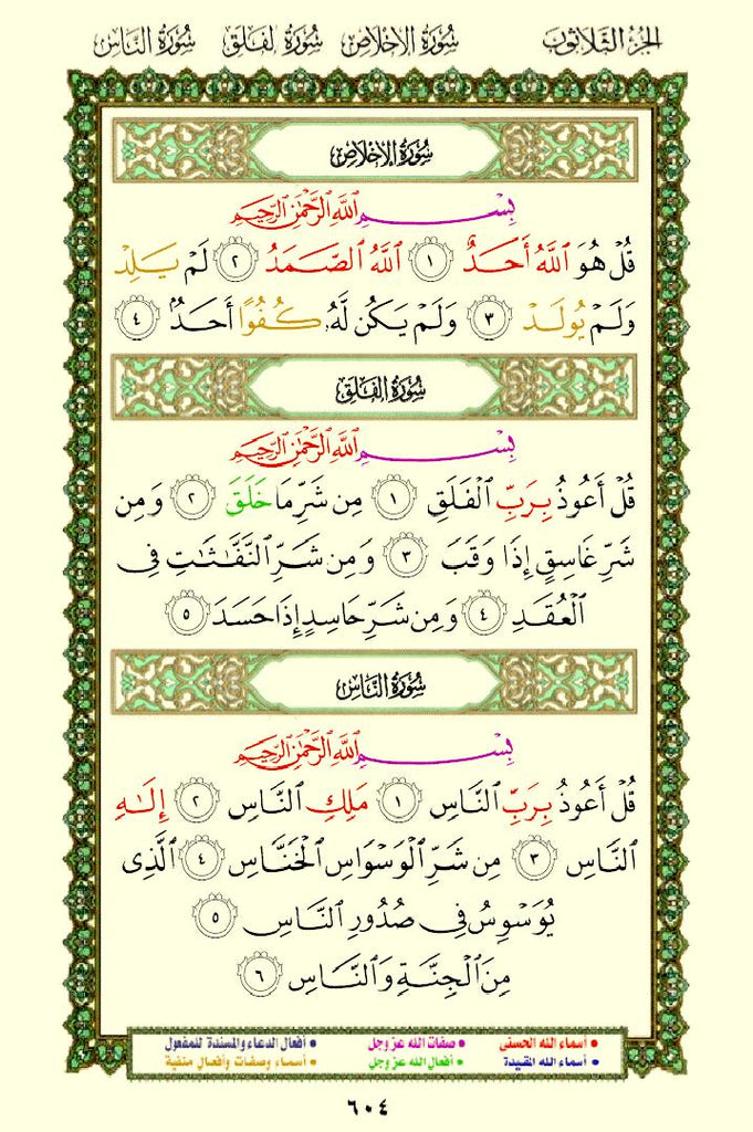 The Quran with Asma Sifat in Color (مصحف الأسماء والصفات) This is a special edition of the Quran that highlights the names (Asma) and attributes (Sifat) of Allah using different colors. This design helps readers easily identify and reflect on the divine names and attributes mentioned throughout the Quran.