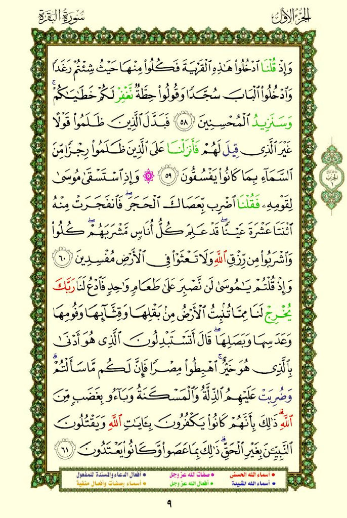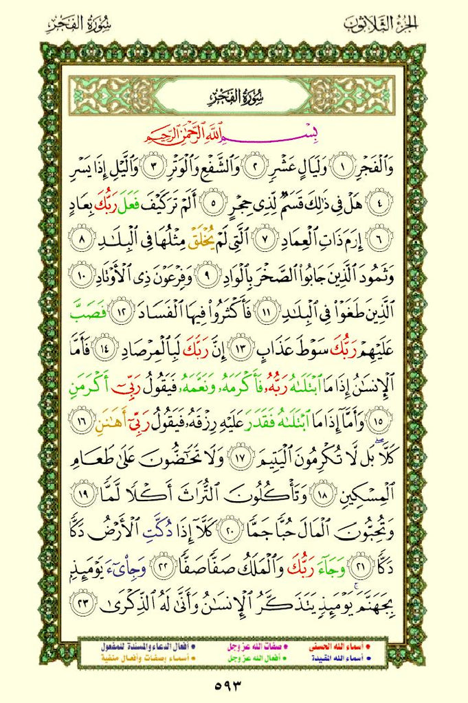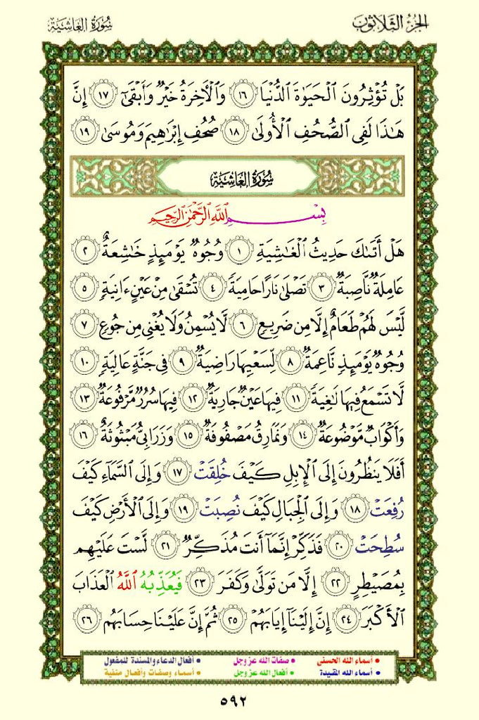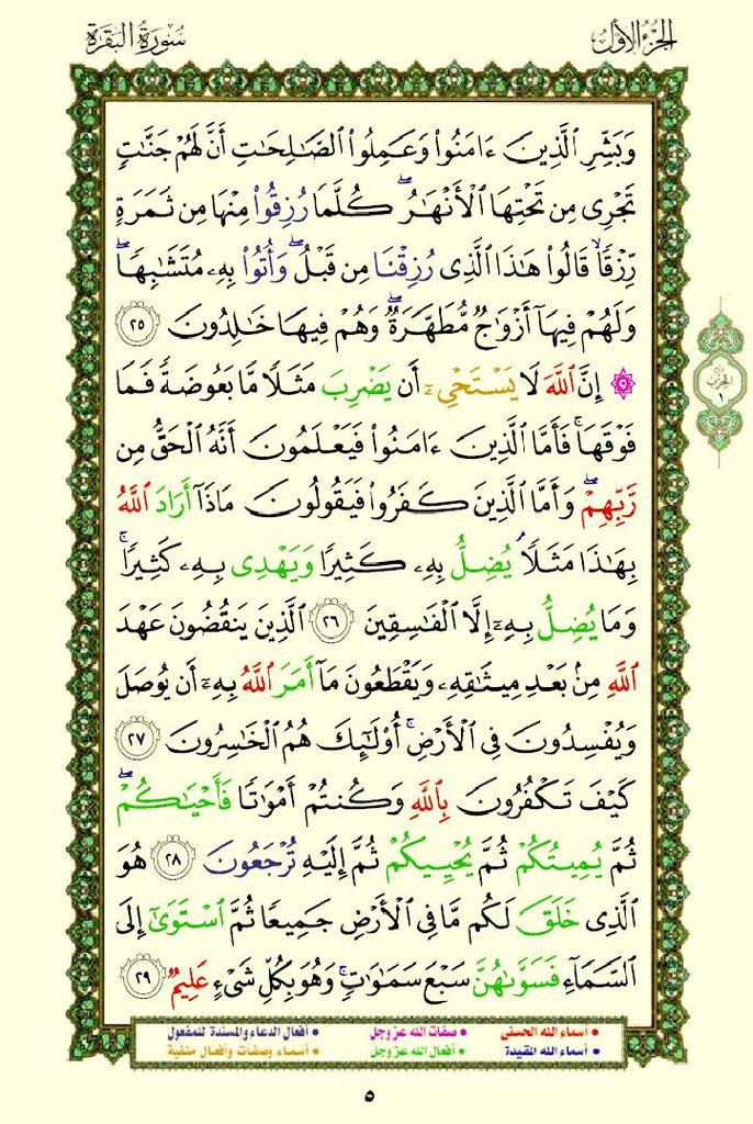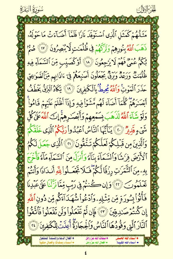 - Color-Coded Text: The names and attributes of Allah are highlighted in distinct colors, making them stand out.