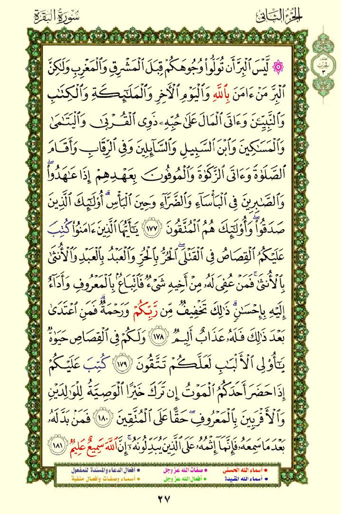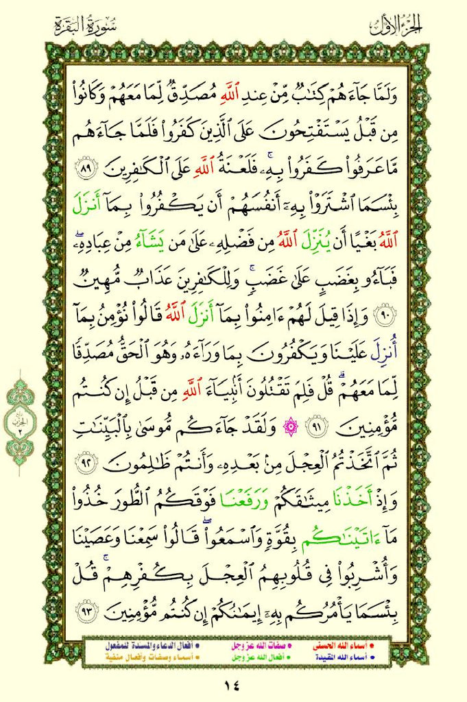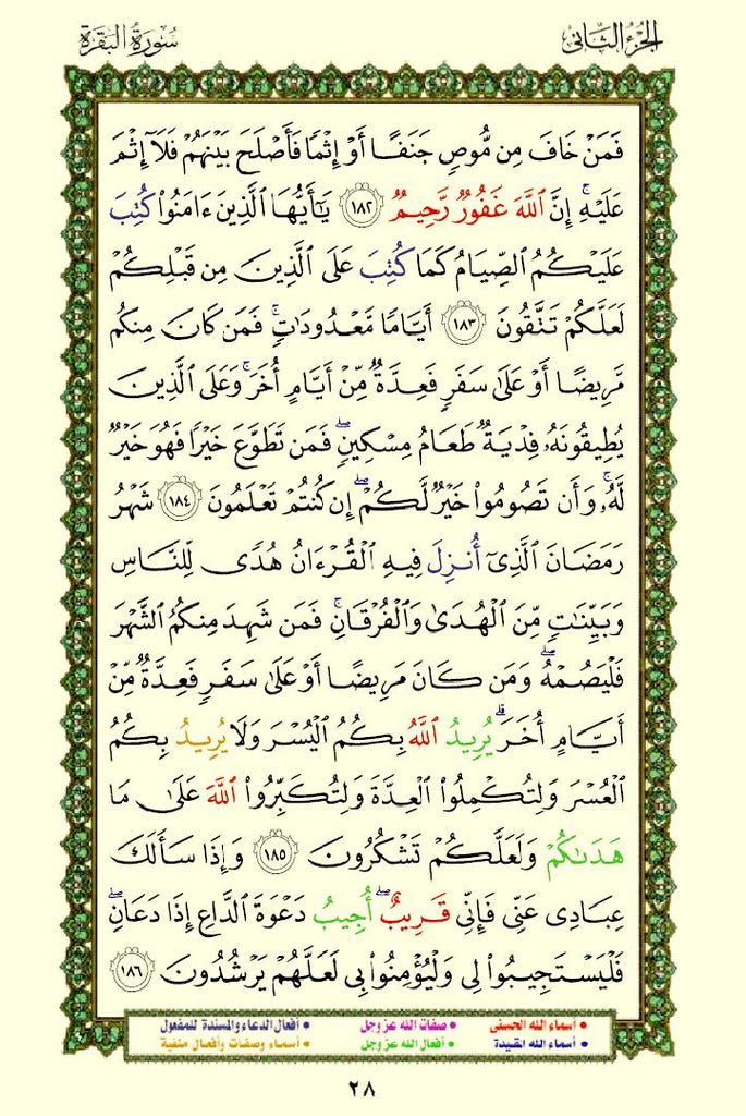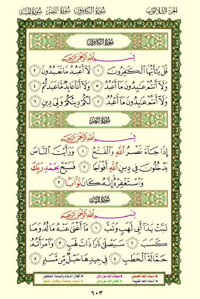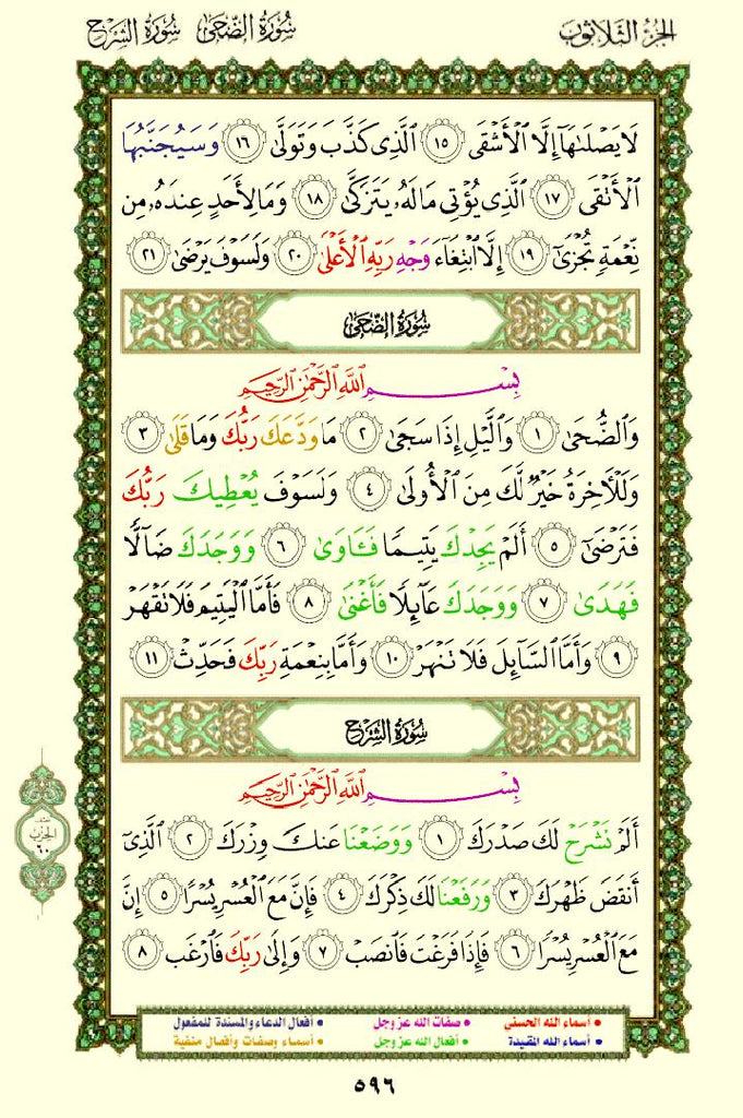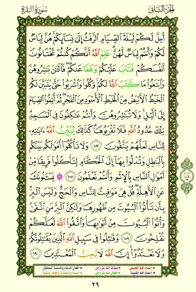 - Color-Coded Text: The names and attributes of Allah are highlighted in distinct colors, making them stand out.