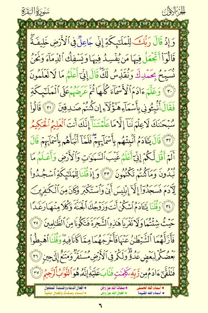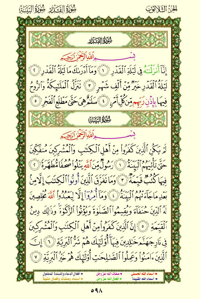Quran with Asma Sifat in Color – Free PDF