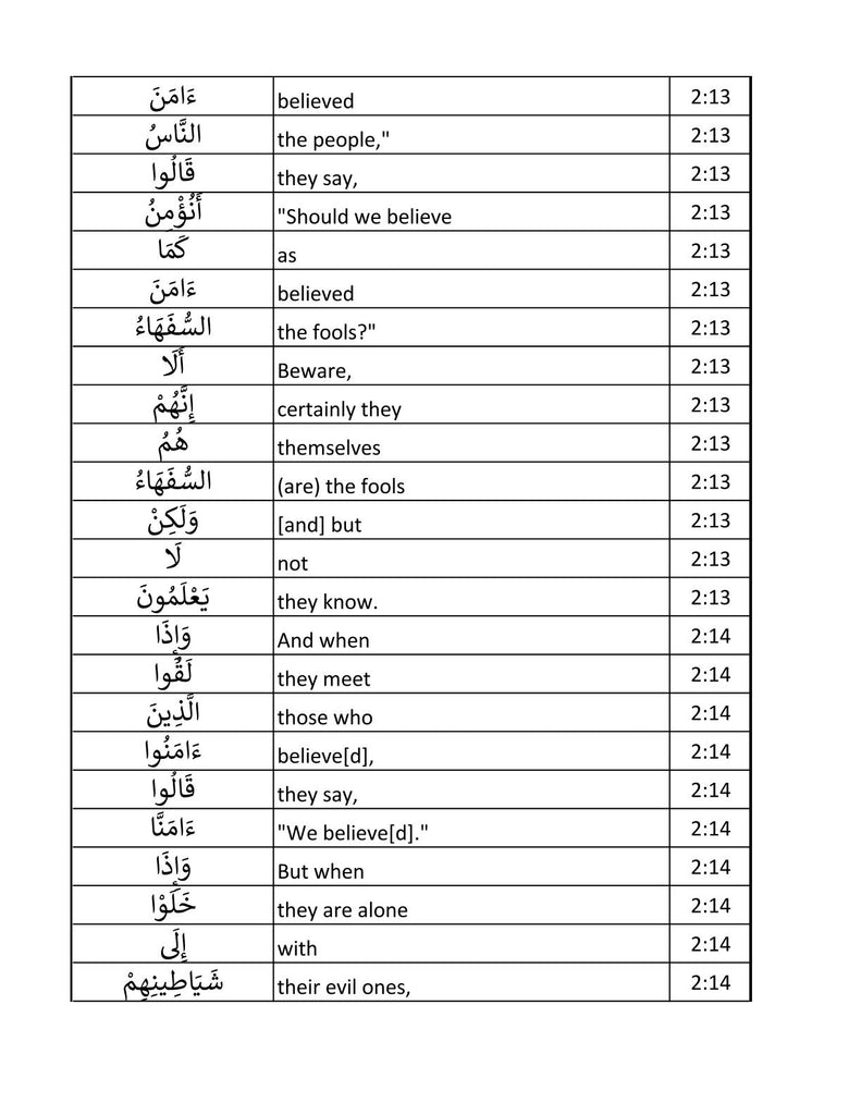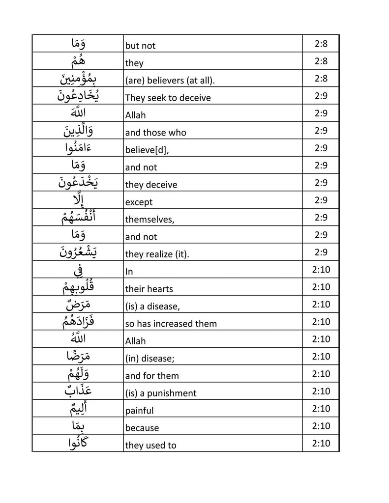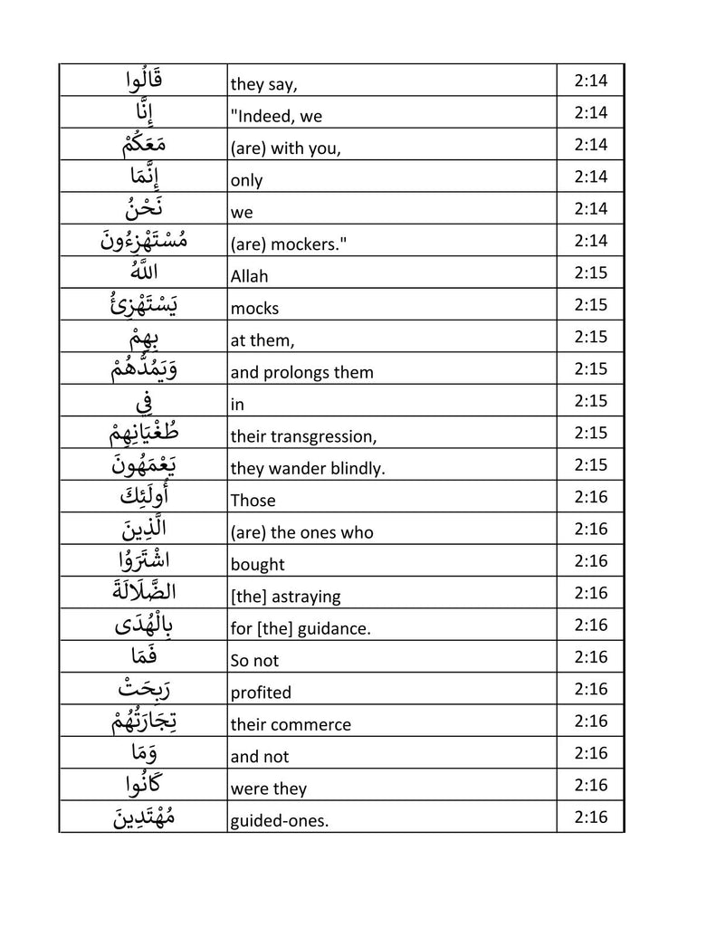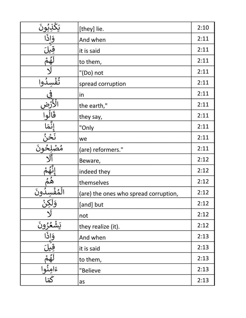 The Glorious Quran Word for Word In Table Form PDF