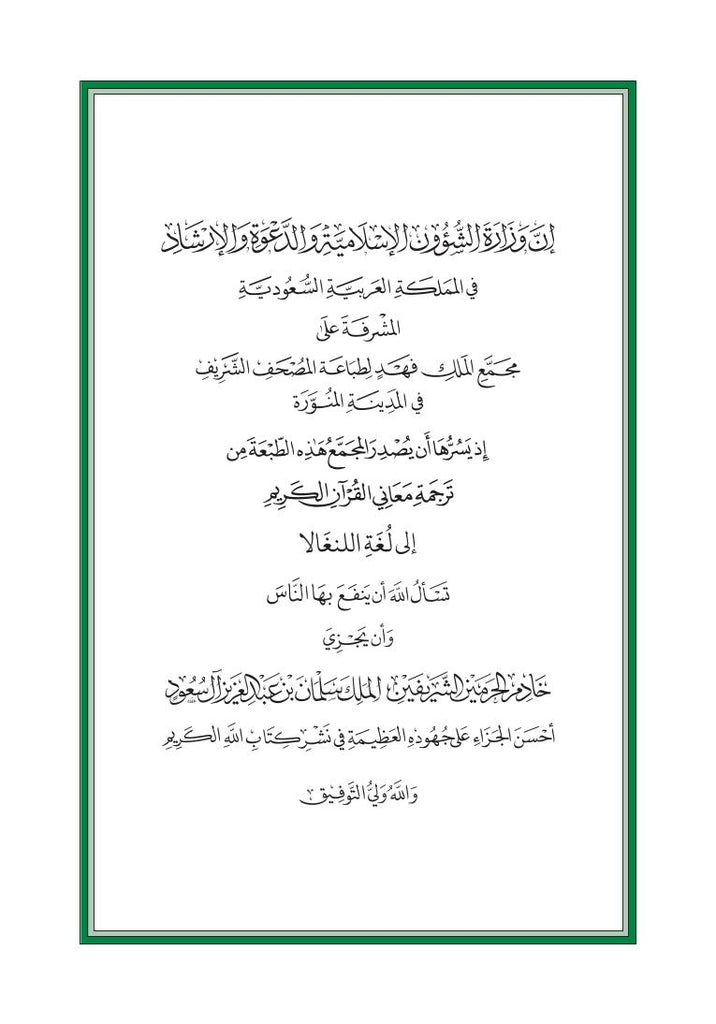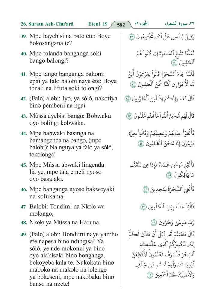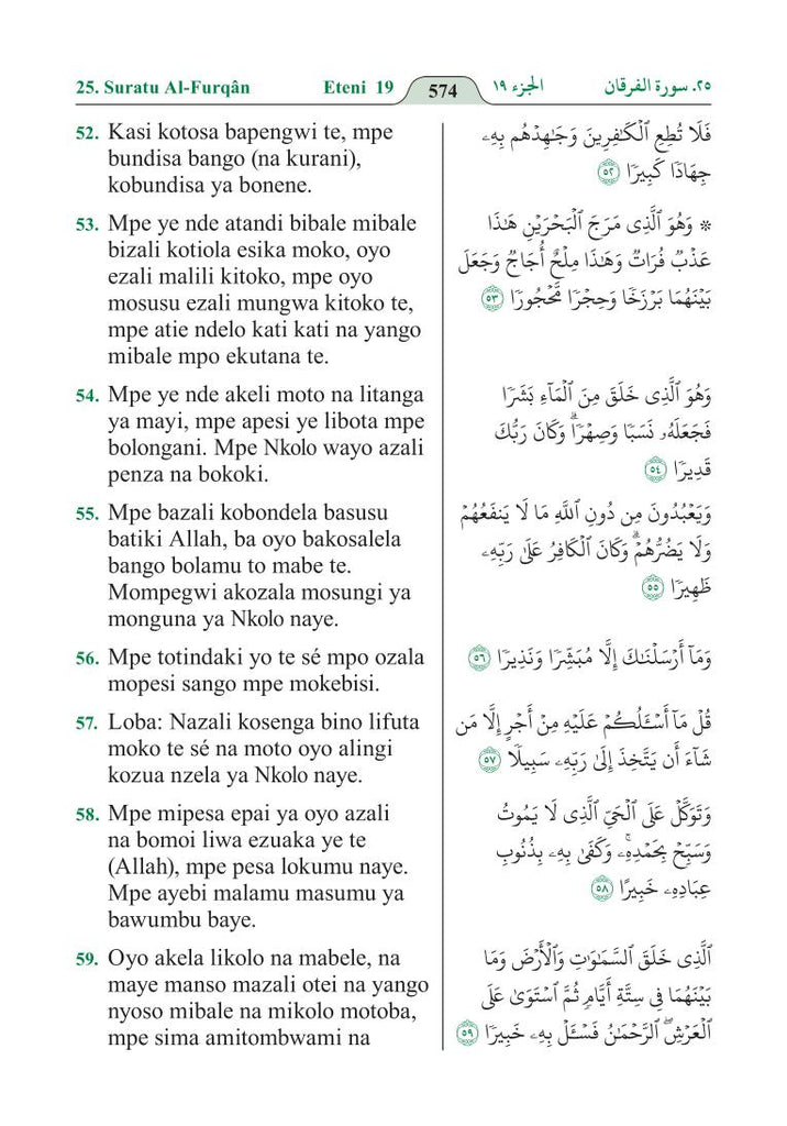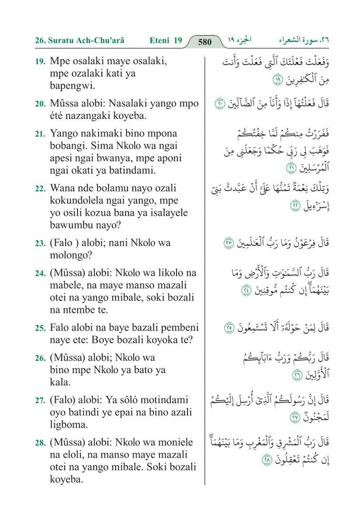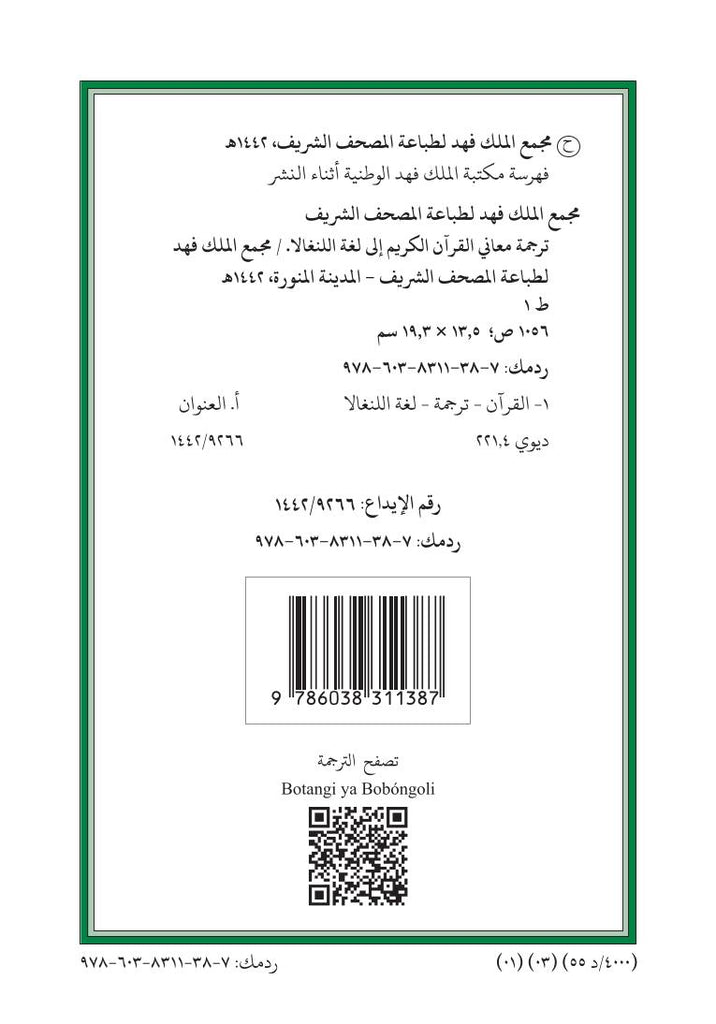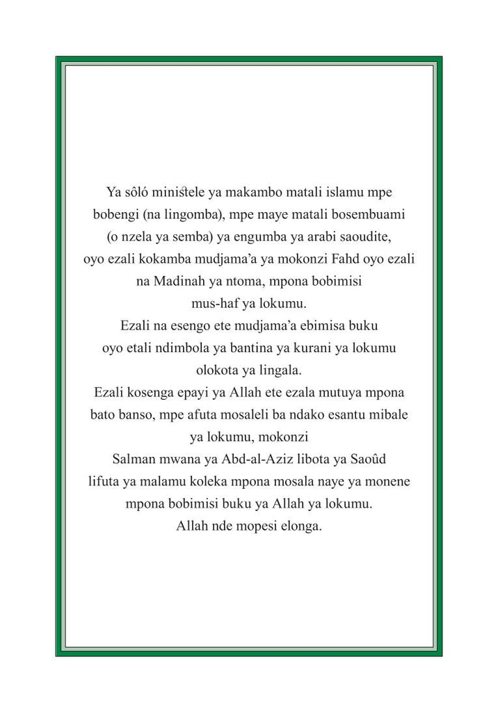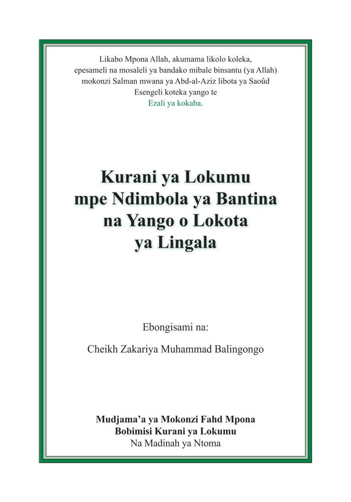 Lingala Holy Quran Translation اللنغالا presents the meanings of the Holy Quran in Lingala, a major lingua franca spoken in the Democratic Republic of the Congo and the Republic of the Congo. It allows Lingala-speaking Muslims to read and understand the words of Allah in their everyday language, supporting clear comprehension, reflection, and teaching in homes, masjids, and study circles throughout Central Africa.