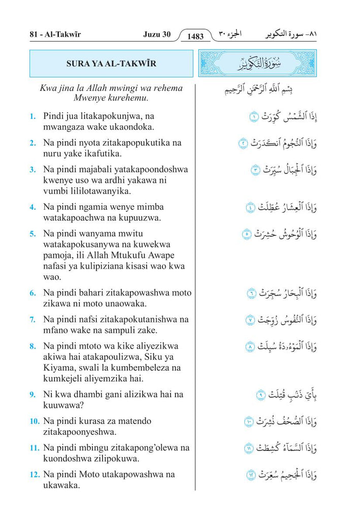 Download Swahili Kiswahili Holy Quran Translation السواحلية – Free PDF
