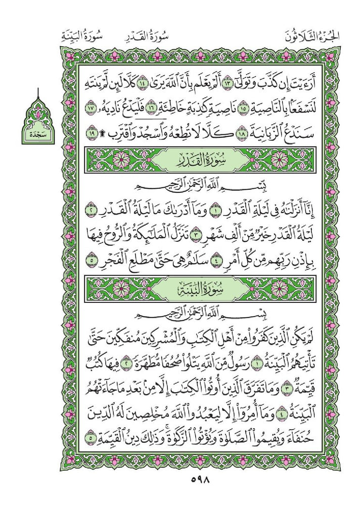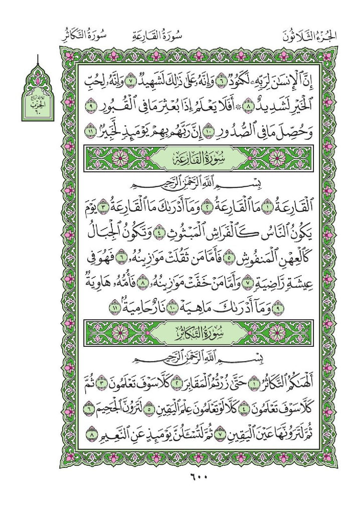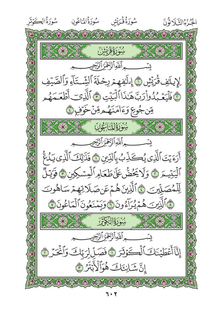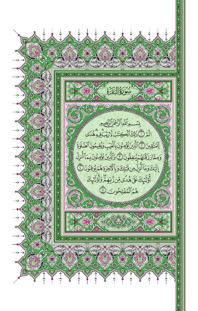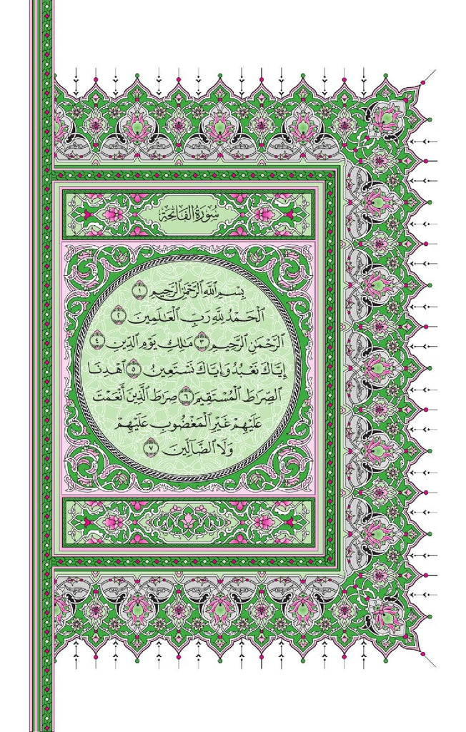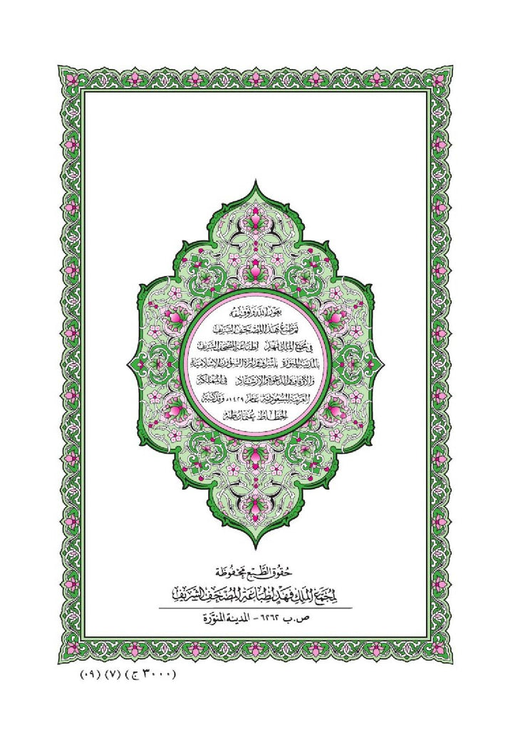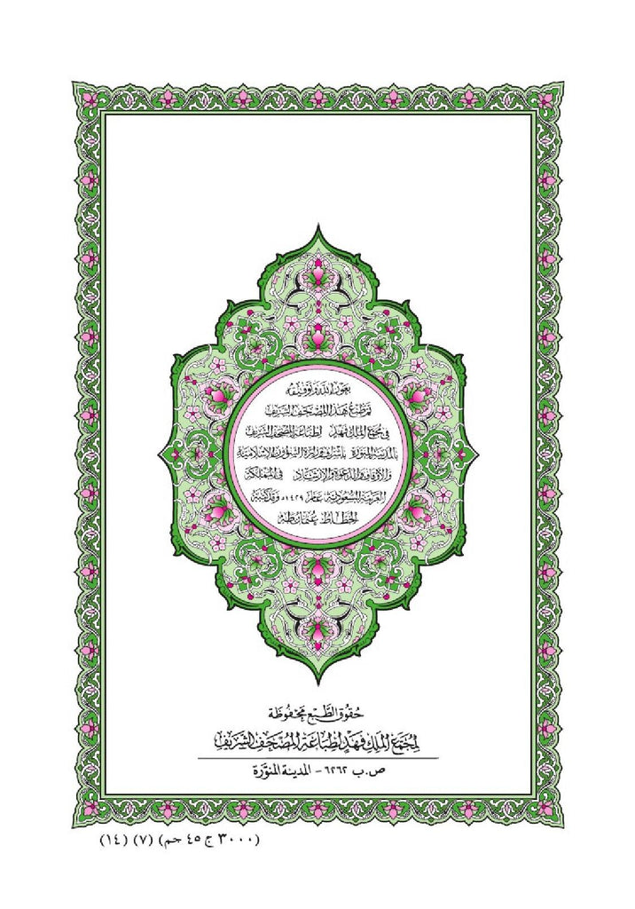 The regular Qur'an of Madinah, in green, was printed in the King Fahd Complex in Madinah, and it is one of the most beautiful copies of The Holy Qur'an written with the Ottoman drawing and was written by the calligrapher Othman Taha.