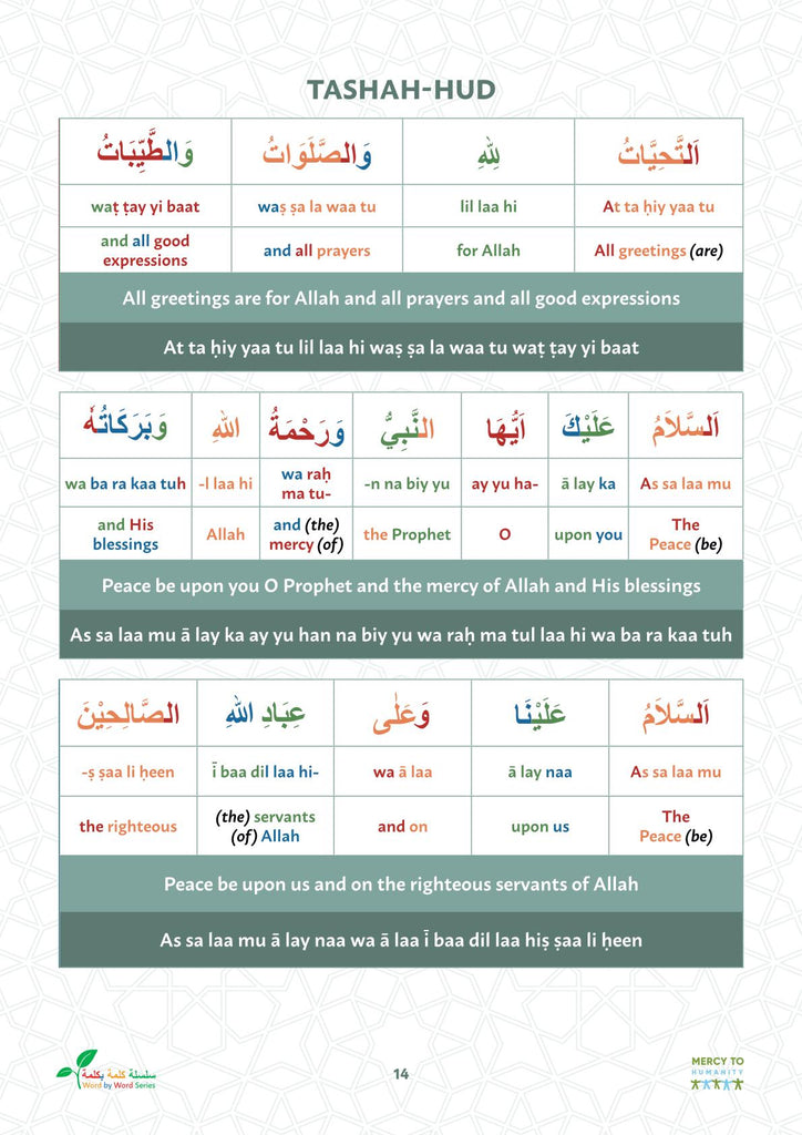 Please find here, a series of guides showing you how each word in our salaah is translated and transliterated.